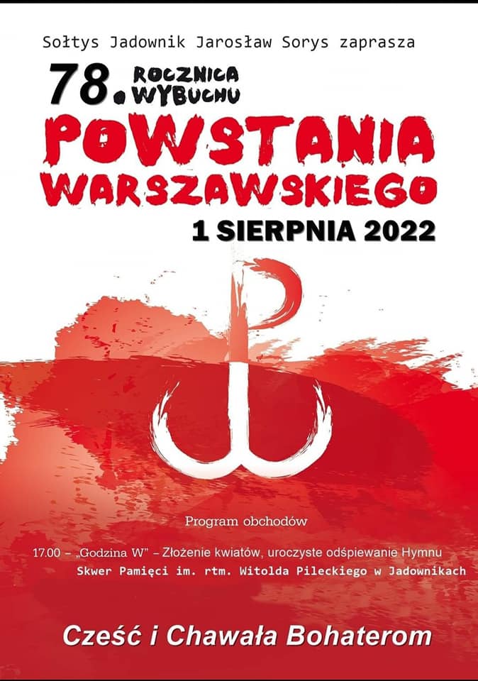 Jak co roku do upamiętnienia powstańców warszawskich zapraszają mieszkańcy Jadownik. Rok rocznie Sołtys wsi Jadowniki Jarosław Sorys wspólnie z Radą Sołecką oraz mieszkańcami Jadownik upamiętnią heroiczną walkę o wolność.