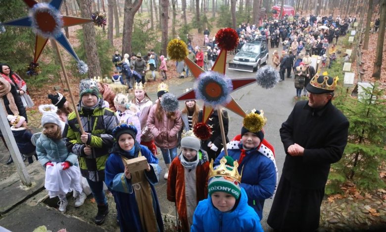 6 stycznia po sumie o 10:30 spod kościoła wyszedł duży orszak, który udał się w 2-kilometrową trasę do kaplicy na Górach. Orszak szedł z gwiazdą i śpiewem kolęd. Przy kaplicy czekały na wszystkich, a szczególnie dzieci, zwierzęta z żywej szopki. Przy figurze Matki Bożej Trzej Królowie oddali pokłon