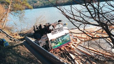 Czchów. W wyniku zdarzenia samochód ciężarowy wjechał do jeziora. Utrudnienia na DK 75 / zdjęcia
