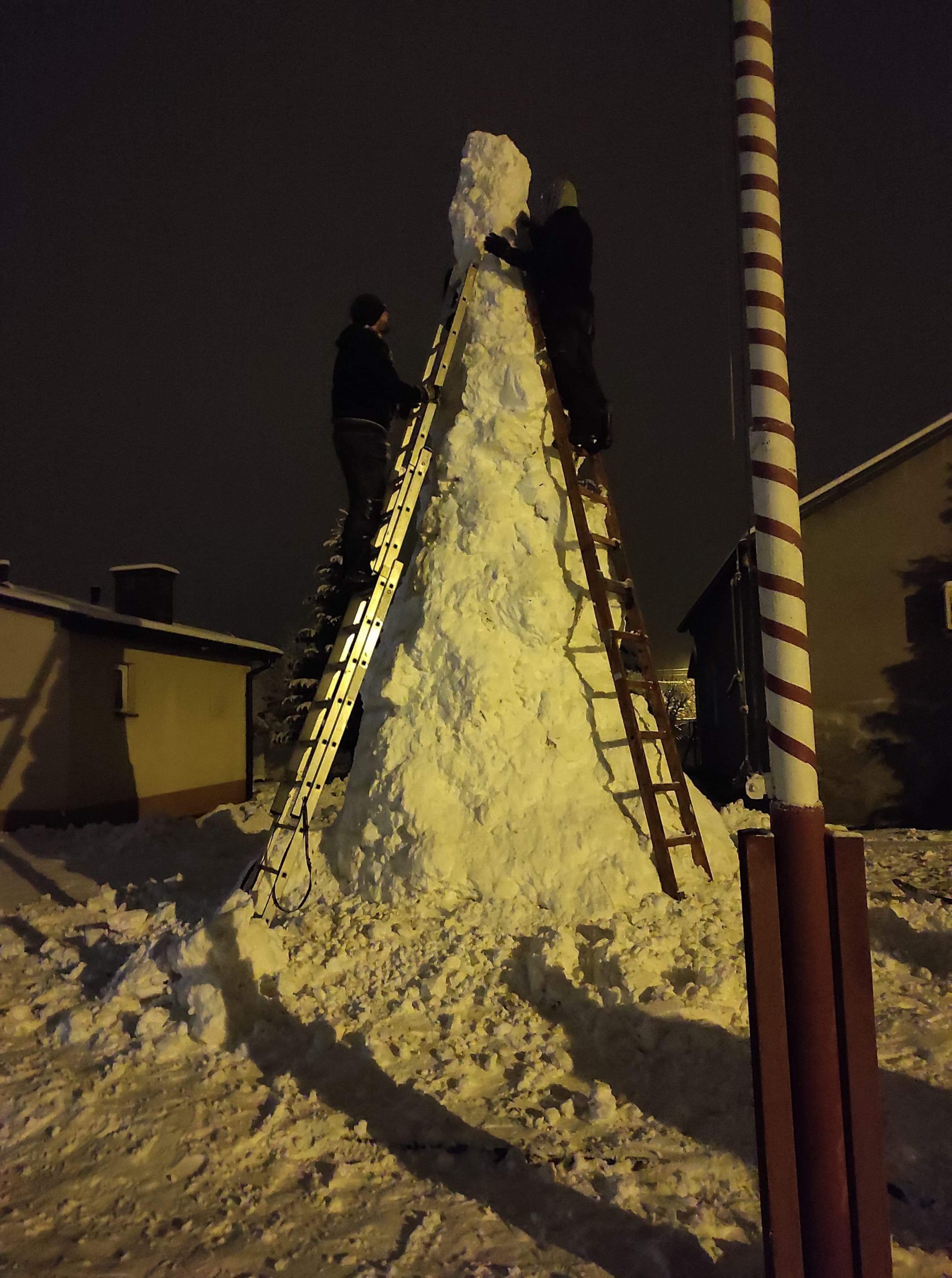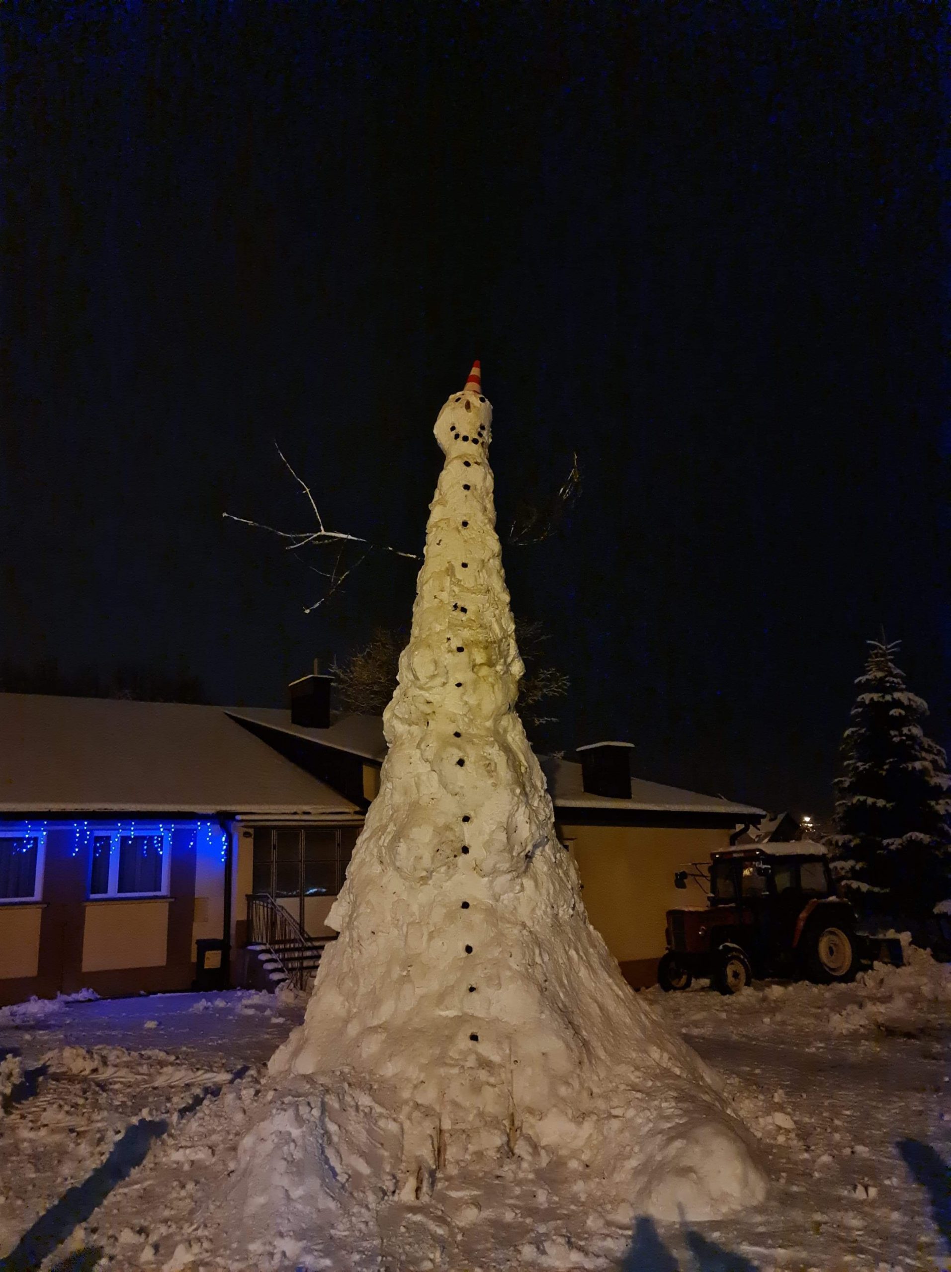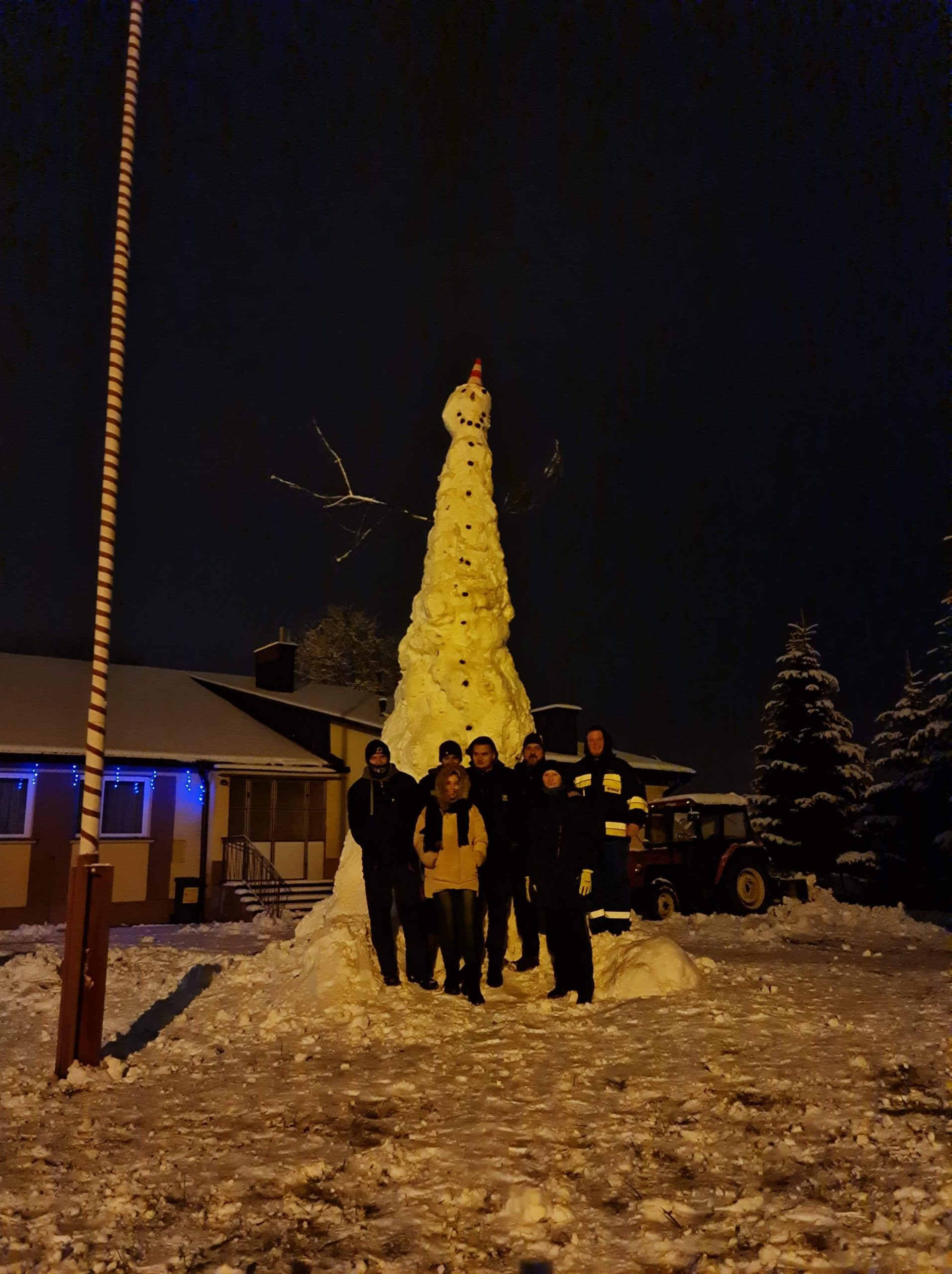 – Podziwiając bałwany z powiatu brzeskiego, postanowiliśmy wykorzystać odgarnięty śnieg i ulepić pokaźnych rozmiarów bałwana. W trzy godziny ulepiliśmy bałwana o wysokości 7 metrów. W akcji brało udział 6 strażaków, 2 żony, 1 narzeczona i 3 dzieci – mówi Tomasz Bardoń z OSP Łętowice.