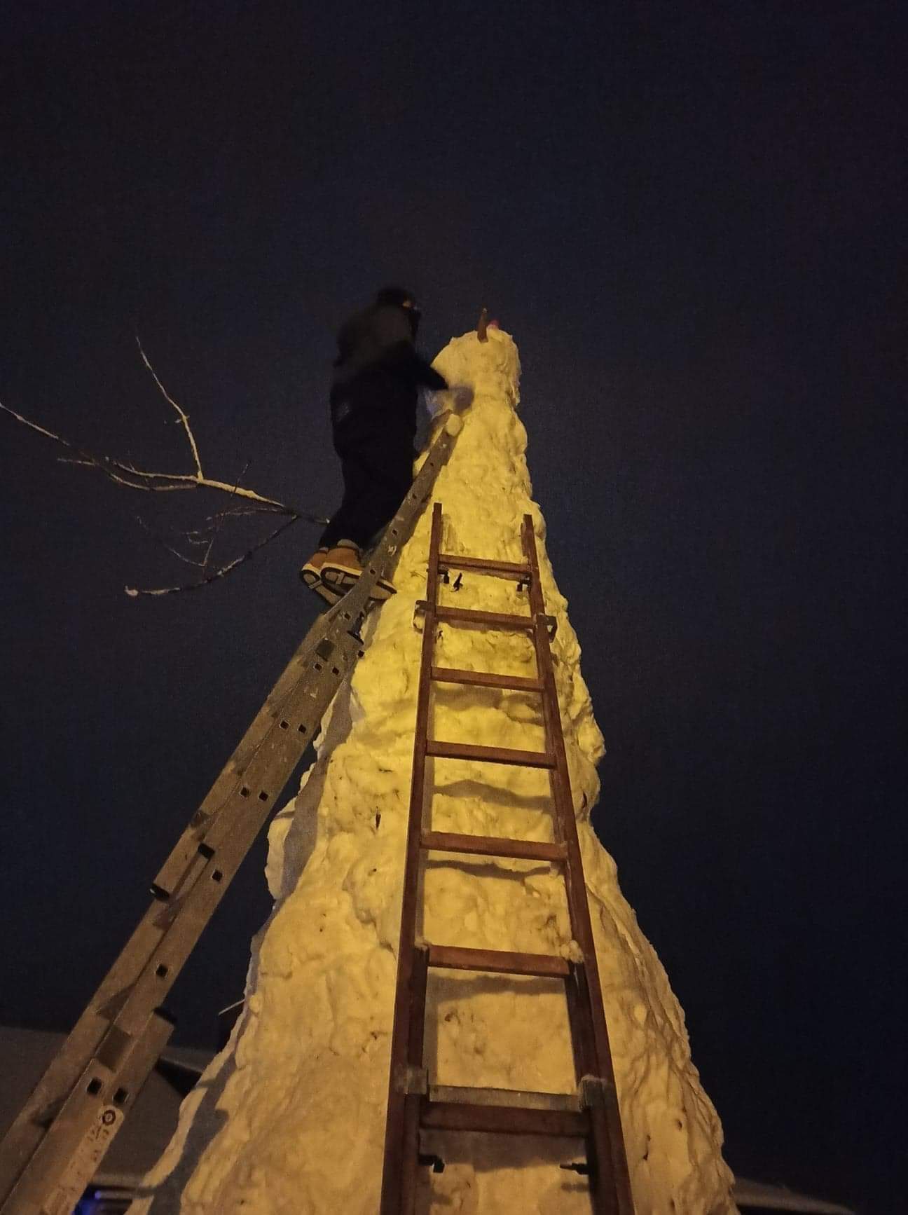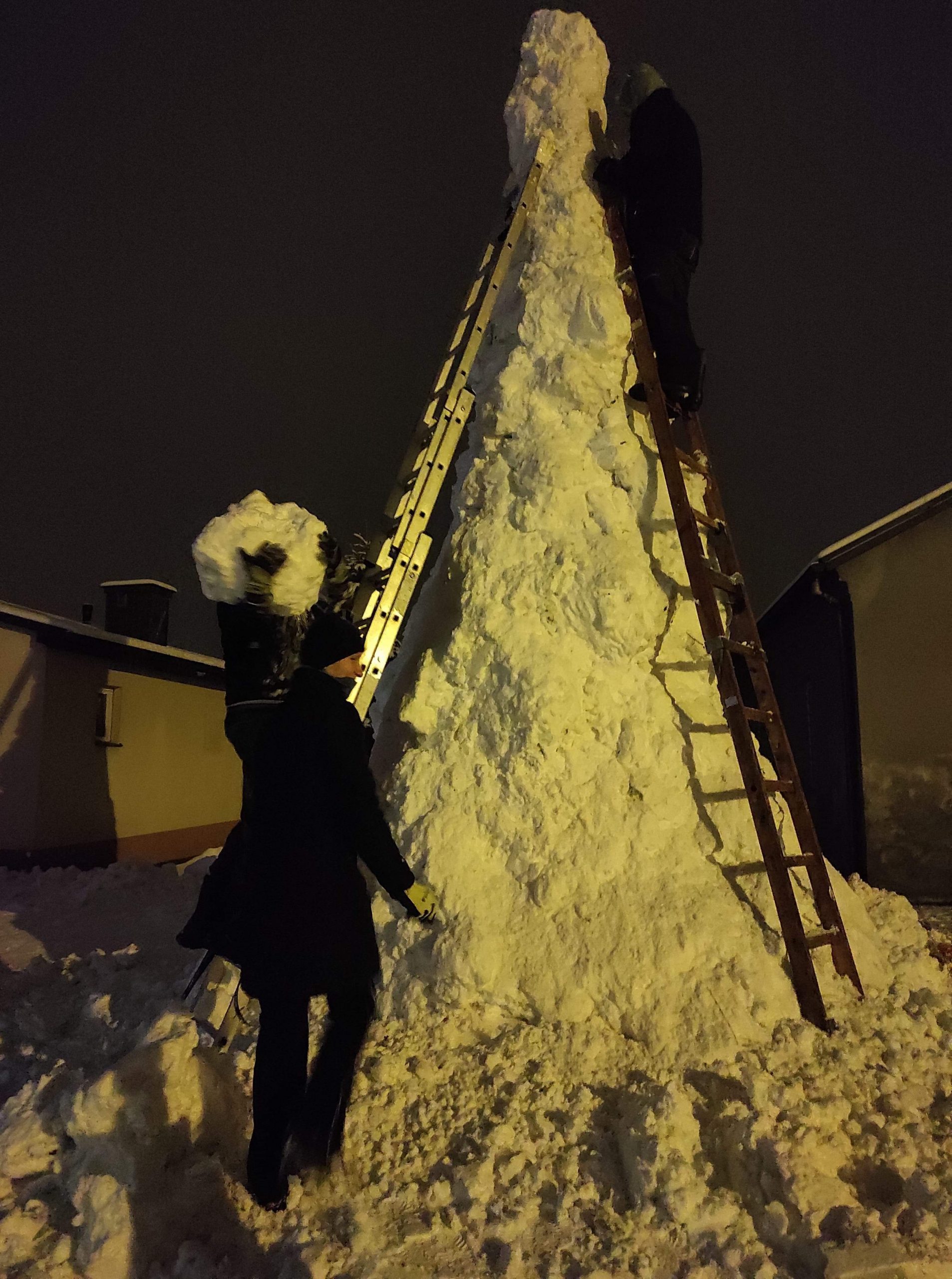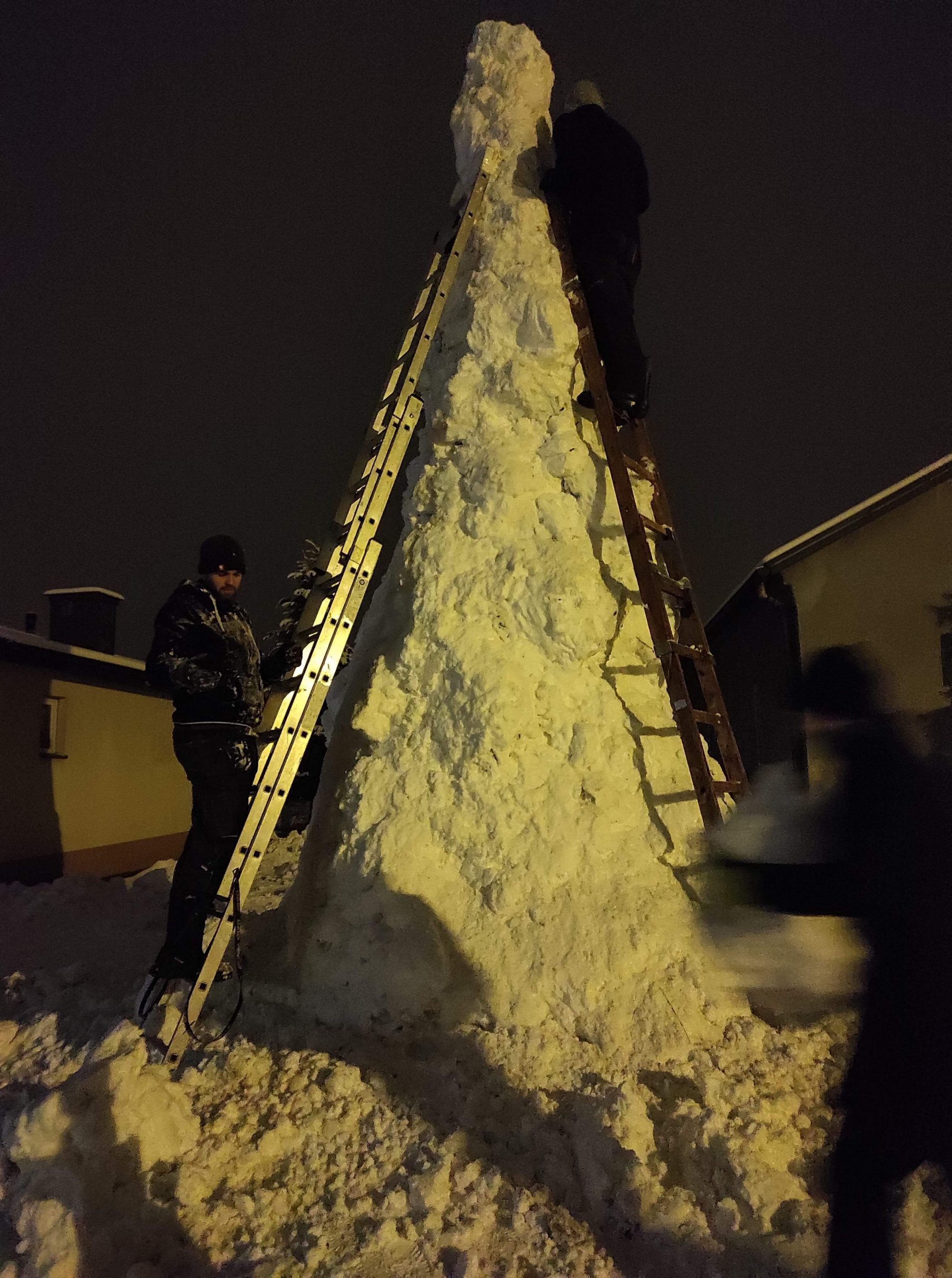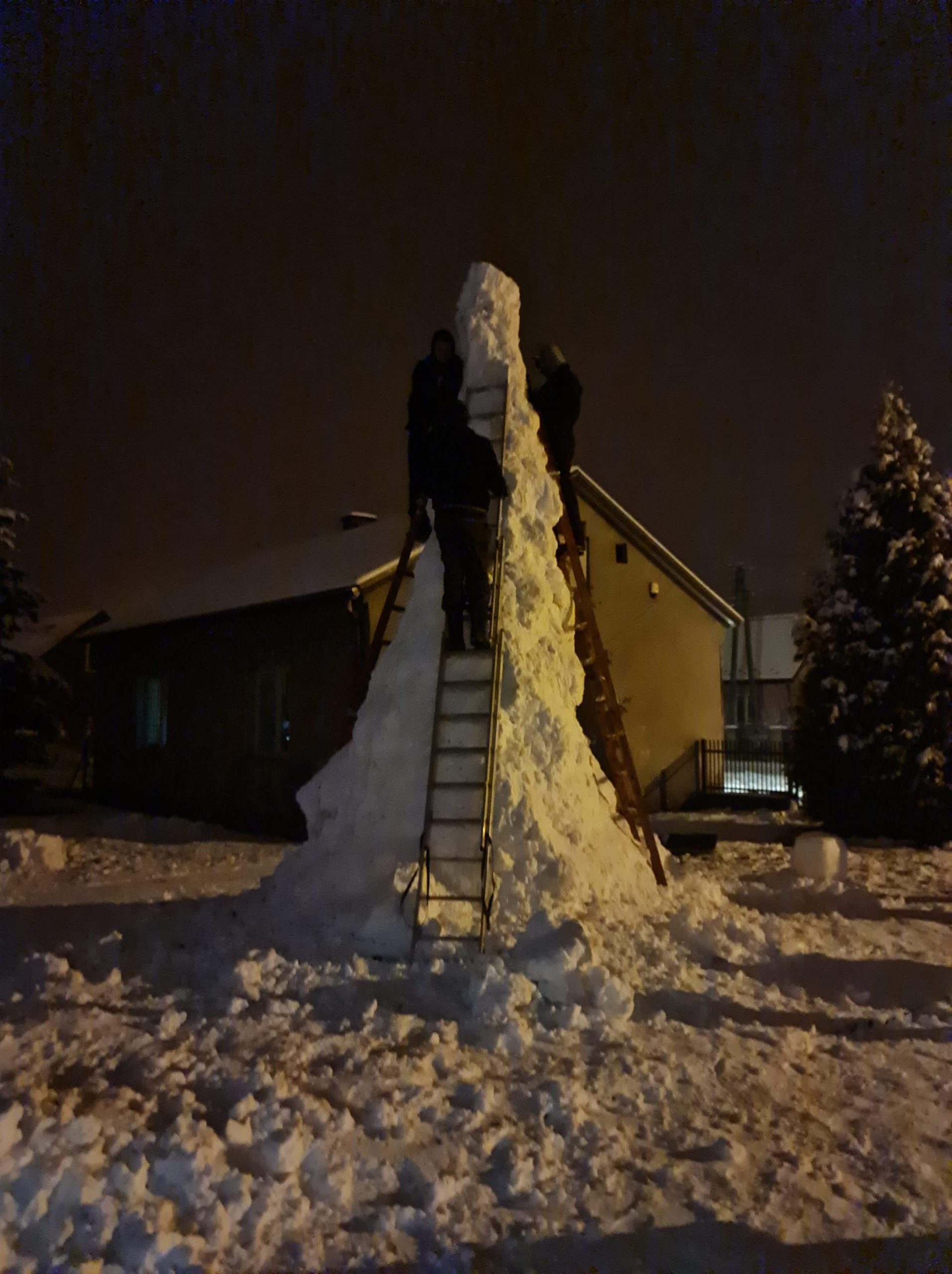– Podziwiając bałwany z powiatu brzeskiego, postanowiliśmy wykorzystać odgarnięty śnieg i ulepić pokaźnych rozmiarów bałwana. W trzy godziny ulepiliśmy bałwana o wysokości 7 metrów. W akcji brało udział 6 strażaków, 2 żony, 1 narzeczona i 3 dzieci – mówi Tomasz Bardoń z OSP Łętowice.