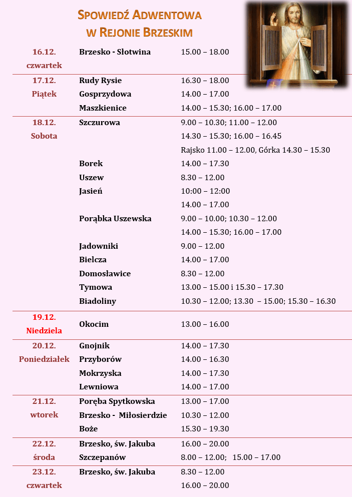 HARMONOGRAM SPOWIEDZI / POWIAT BRZESKI