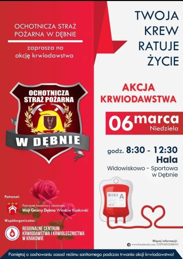Już w najbliższą niedzielę 6 marca 2022 r. z okazji Dnia Kobiet odbędzie się akcja krwiodawstwa organizowana przez jednostkę OSP Dębno.