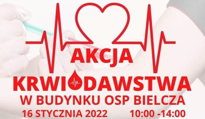 Akcja krwiodawstwa w OSP Bielcza. Oddaj krew 16 stycznia 2022 r.