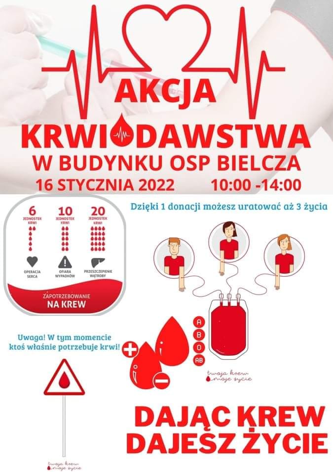Akcja krwiodawstwa w OSP Bielcza. Oddaj krew 16 stycznia 2022 r.