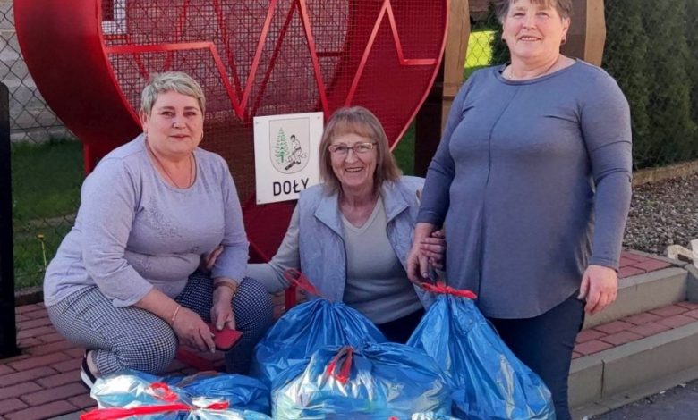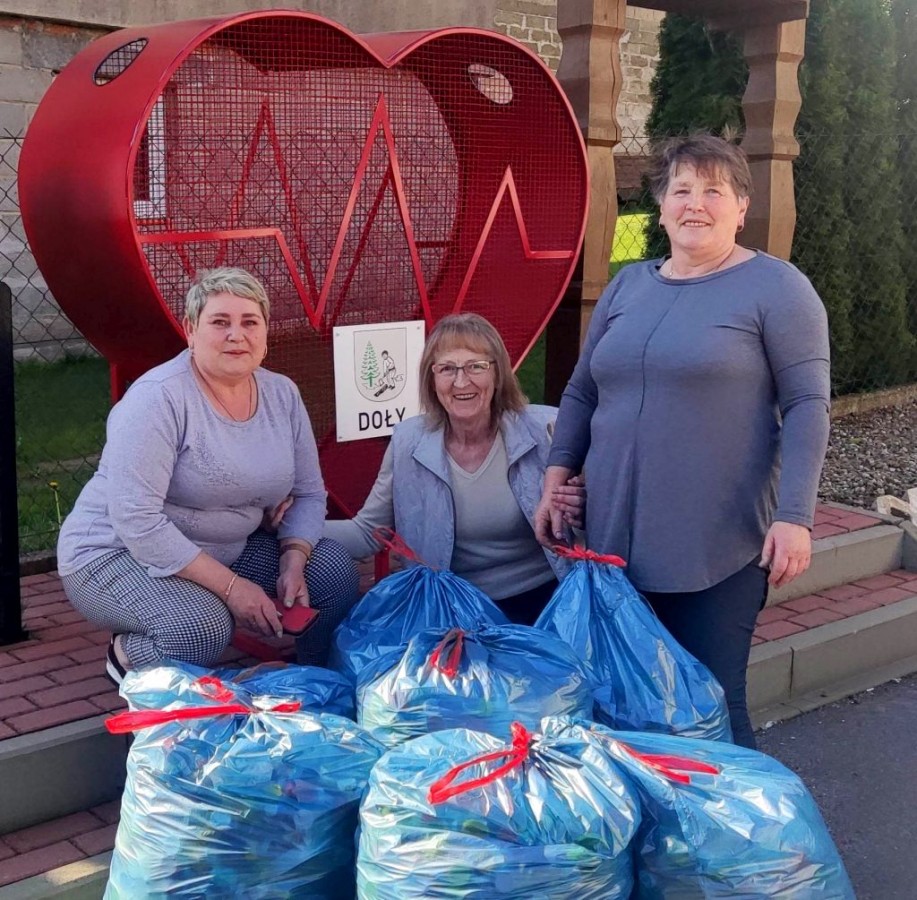 W ubiegłym miesiącu po raz pierwszy zostało opróżnione metalowe serce na nakrętki, umieszczone obok Remizy w Dołach.