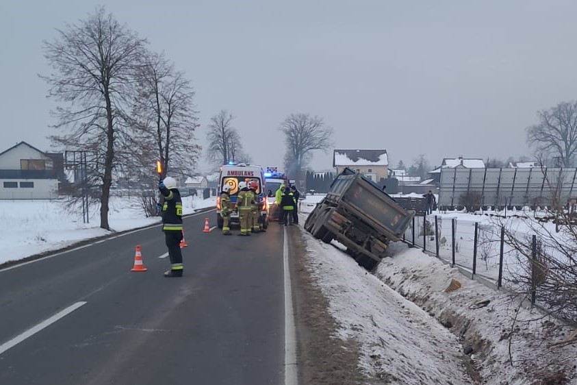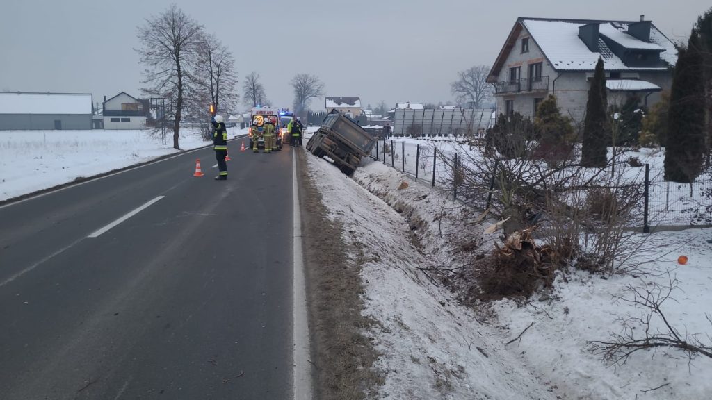W czwartek, 22 stycznia 2026 roku, około godziny 15:35, na drodze wojewódzkiej nr 965 w miejscowości Baczków doszło do zdarzenia drogowego z udziałem samochodu ciężarowego. Pojazd zjechał do przydrożnego rowu.
