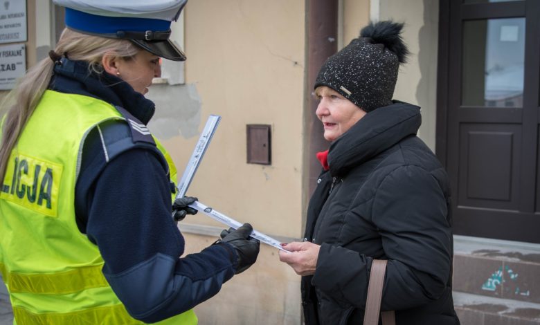 Policjanci Komendy Powiatowej Policji w Bochni we współpracy ze pracownikami Starostwa Powiatowego na ulicach miasta wręczali uczestnikom ruchu drogowego opaski odblaskowe. Te niewielkie elementy założone na odzież, plecak lub torebkę potrafią uratować życie.