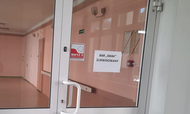 Chętnych do zjedzenia czegoś dobrego wita smutna kartka z napisem „Bar SMAK zlikwidowany”.