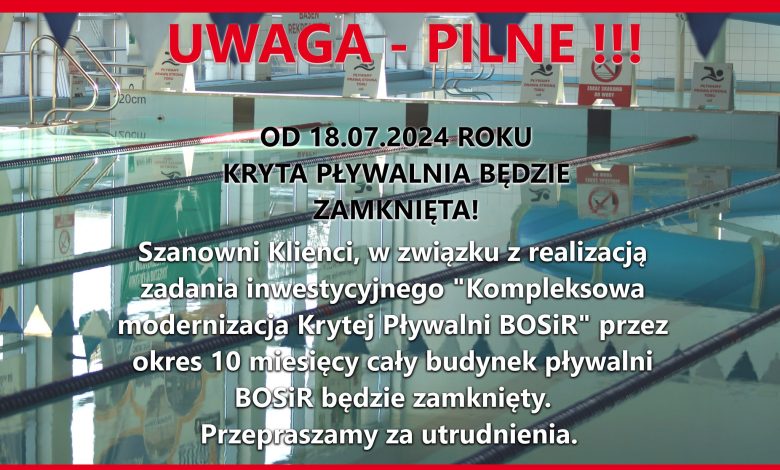 Niestety czas promocji uległ nagle skróceniu. W czwartek 11 lipca Brzeski Ośrodek Sportu i Rekreacji poinformował na swoim profilu o zamknięciu obiektu od 18 lipca 2024 r.