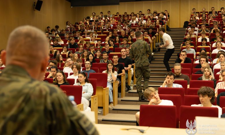 Blisko pół tysiąca studentów i naukowców na sali wykładowej Akademii Górniczo-Hutniczej uczestniczyło w spotkaniu dowództwa małopolskich Terytorialsów. Żołnierze rozmawiali o bezpieczeństwie w regionie i udziale środowiska uniwersyteckiego w wykorzystaniu nowych technologii w armii.