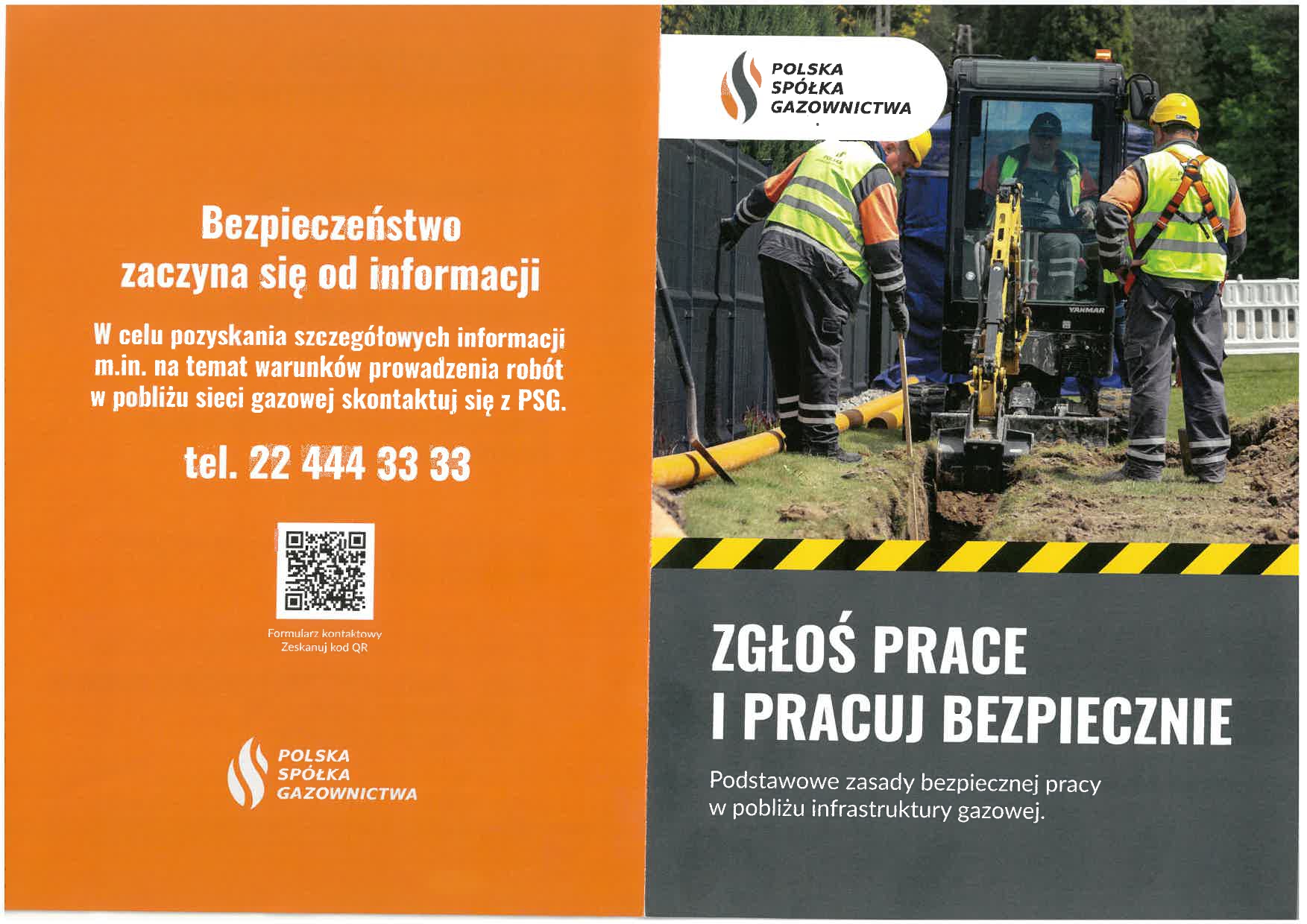 Polska Spółka Gazownictwa apeluje o świadome i bezpieczne wykonywanie prac ziemnych w miejscach lokalizacji podziemnej infrastruktury technicznej, a w szczególności sieci gazowej.