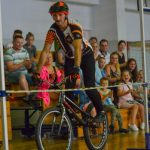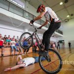 To właśnie jego pokaz wyczynowej jazdy na rowerze był największą atrakcją wieczoru. Do wykonywania kolejnych, trudnych technicznie figur i trików głośno dopingowali wszyscy zebrani na imprezie.