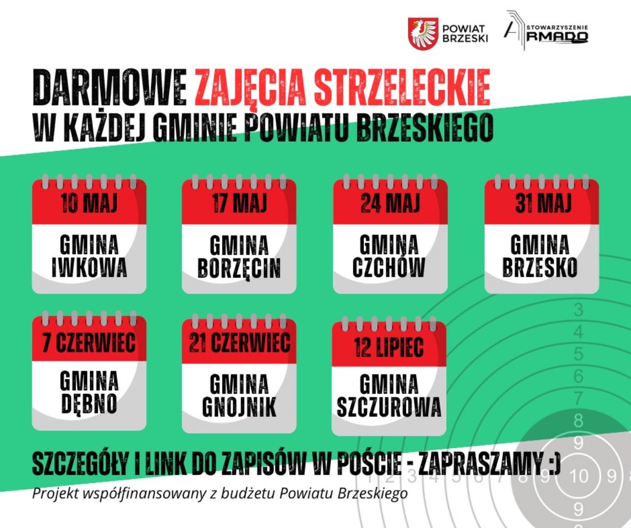W ramach zadania publicznego „Zajęcia ze strzelectwa sportowego w każdej gminie powiatu brzeskiego uwieńczone międzygminnym turniejem strzeleckim”, realizowanego dzięki dofinansowaniu z budżetu Powiatu Brzeskiego, organizujemy zajęcia teoretyczno-praktyczne mające na celu popularyzację strzelectwa sportowego, rozwijanie bezpiecznych umiejętności posługiwania się bronią oraz stworzenie warunków do aktywnego spędzania czasu wolnego.