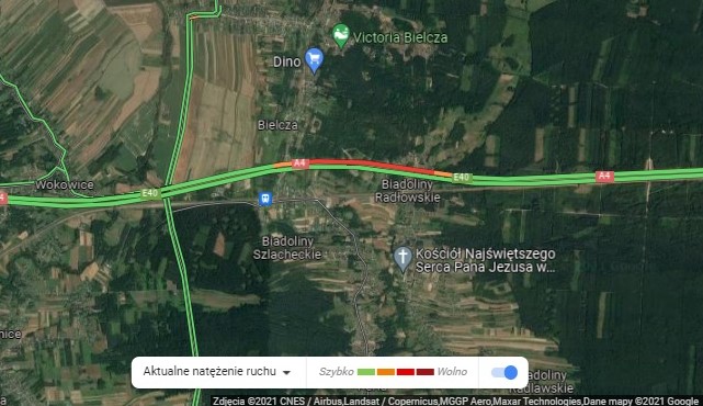 Sytuacja na autostradzie A4 / Bielcza / godz. 14.15 w dniu 12 grudnia 2021 r.