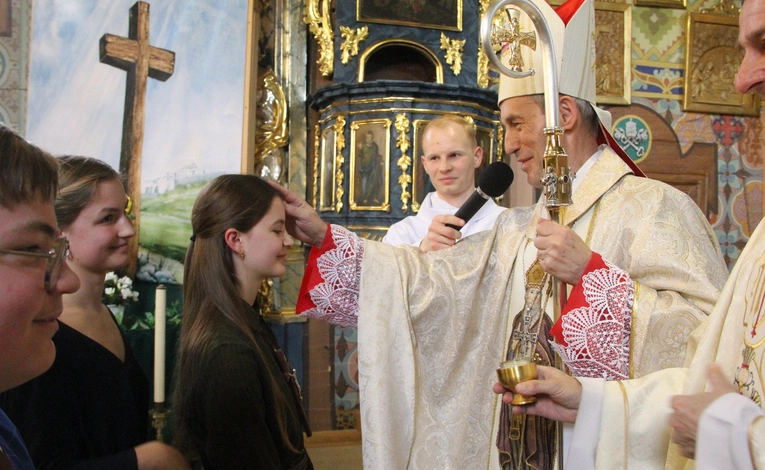 – Dzisiaj wy, przyjmując sakrament bierzmowania, wchodzicie na drogę wytyczoną przez apostołów. Macie być świadkami Jezusa Zmartwychwstałego, opowiadać ludziom o Jego zwycięstwie nad grzechem, śmiercią i szatanem, dzielić się radością, którą wnosi w nasze życie prawda o tym, że Pan Bóg każdego z nas chce przeprowadzić przez życie doczesne, wspierając swoją łaską, mądrością, błogosławieństwem, byśmy osiągnęli niebo – dodał.
