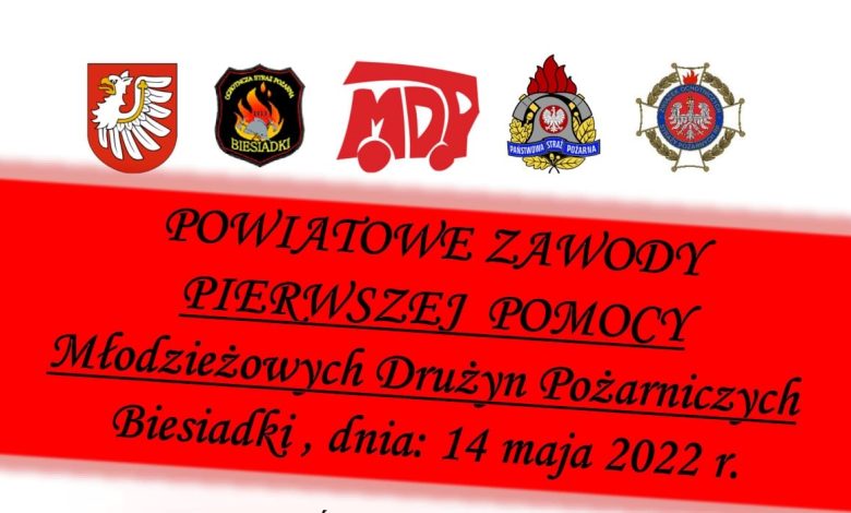 Strażacy z jednostki OSP Biesiadki zapraszają w najbliższą sobotę 14 maja 2022 r. na Powiatowe Zawody Pierwszej Pomocy dedykowane dla Młodzieżowych Drużyn Pożarniczych. W manewrach weźmie udział 12 Młodzieżowych Drużyn Pożarniczych z Gmin Iwkowa, Gnojnik, Borzęcin, Dębno, Szczurowa i Czchów.