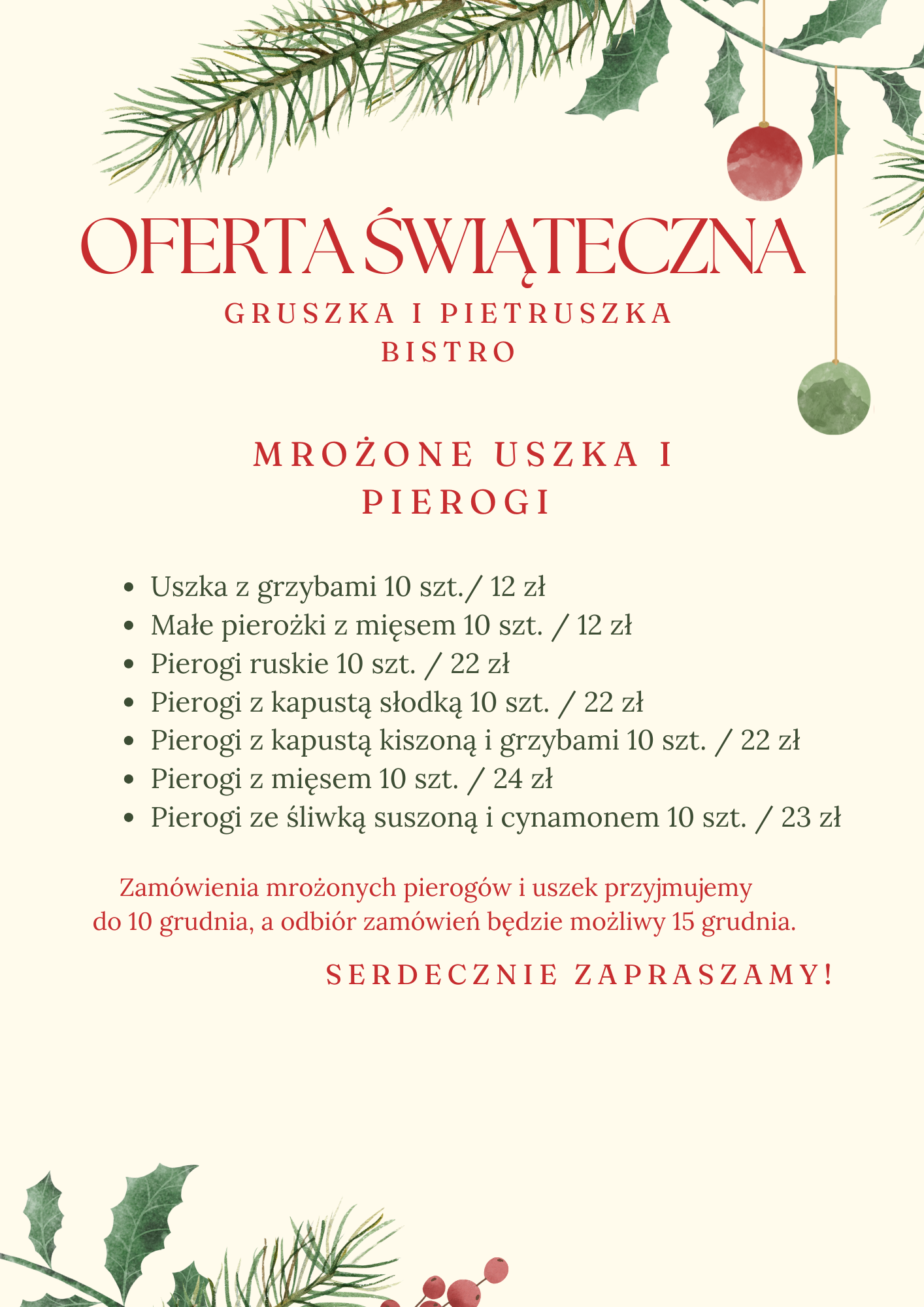 ODBIÓR – gotowe zamówienia będą do odbioru 23 grudnia od godz. 11:00 do 17:00.