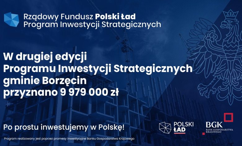 Wszystkie 3 projekty złożone przez gminę Borzęcin zyskały akceptację i otrzymają dofinansowanie w ramach drugiej edycji Programu Inwestycji Strategicznych Polski Ład. Gmina Borzęcin otrzyma wsparcie finansowe w wysokości blisko 10 milionów złotych na realizację następujących projektów: