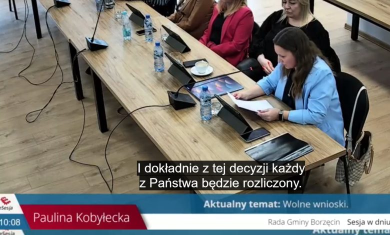 Jako pierwsza głos w tej sprawie zabrała radna Paulina Kobyłecka, która odniosła się bezpośrednio do decyzji z komisji z 23 marca 2026 r., kiedy radni nie zgodzili się na udział Gminy Borzęcin w finansowaniu zadania. W swojej wypowiedzi podkreślała odpowiedzialność za podjęte głosowanie i zwracała uwagę na rozbieżność między wcześniejszymi deklaracjami a ostateczną decyzją.