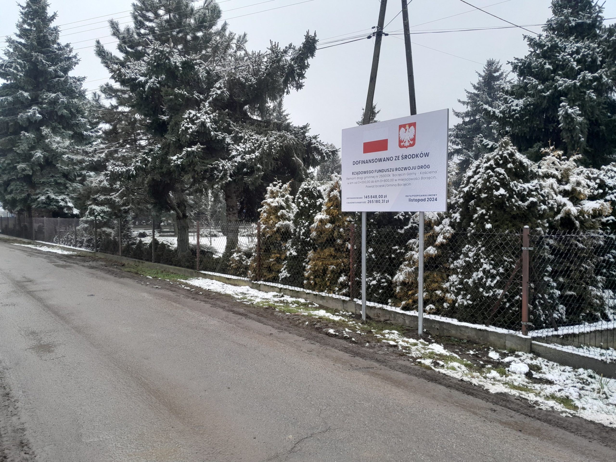 W roku 2024r. Gmina Borzęcin pozyskała środki z Rządowego Funduszu Rozwoju Dróg na realizację zadania pn.: Remont drogi gminnej nr 250010K „Borzęcin Górny – Kościelna” w km od 0+000,00 do km 0+800,00 w miejscowości Borzęcin, Powiat brzeski/Gmina Borzęcin.