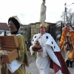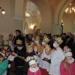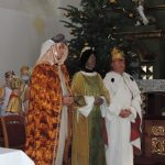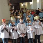 W tym roku Orszak Trzech Króli w Borzęcinie był wyjątkowo krótki, choć sami Mędrcy przeszli bardzo długą drogę. Spotkała ich za to miła niespodzianka. Nie musieli w tym roku wstępować do pałacu Heroda i pytać o drogę, bo dzieci z naszej parafii zaprowadziły ich do Dzieciątka w naszej szopce.