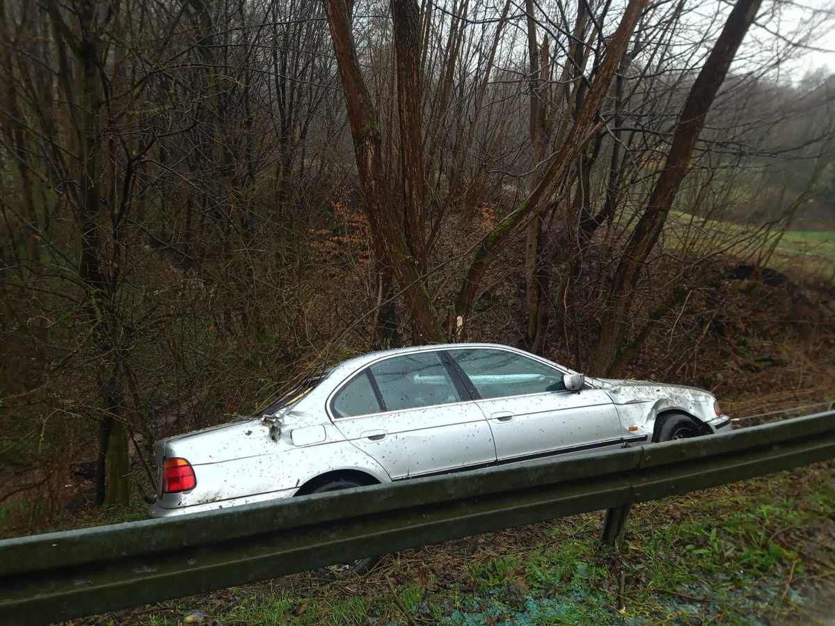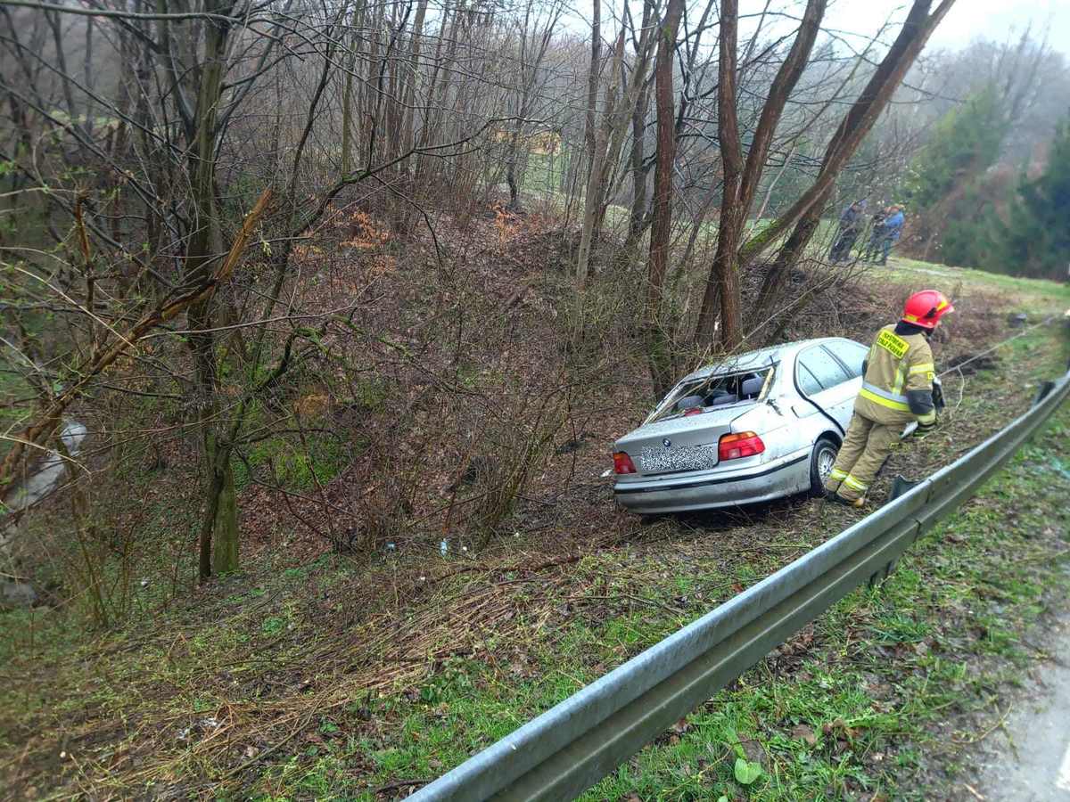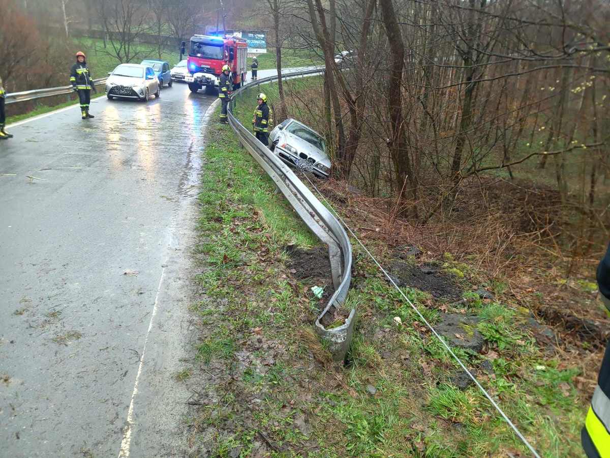 31-letni kierowca, prowadząc w sposób brawurowy samochód BMW E39 doprowadził do bocznego poślizgu, a następnie wypadnięcia pojazdu z drogi. Gdyby nie drzewa znalazłby się kilkanaście metrów niżej spadając ze skarpy. Został ukarany mandatem.
