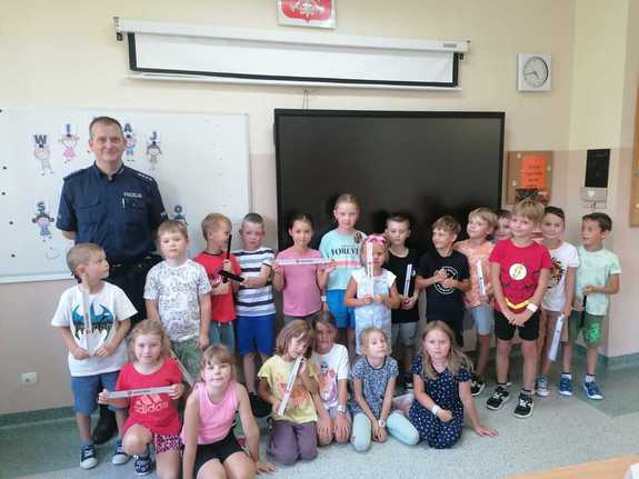 Brzescy dzielnicowi przypominają dzieciom o bezpiecznym zachowaniu na drodze