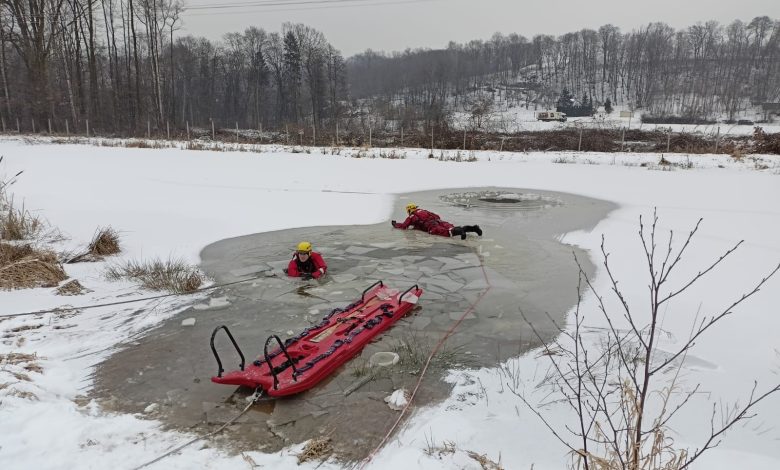 Aura w miesiącu lutym sprzyjała ćwiczeniom z zakresu ratownictwa na obszarach wodnych podczas działań na lodzie.