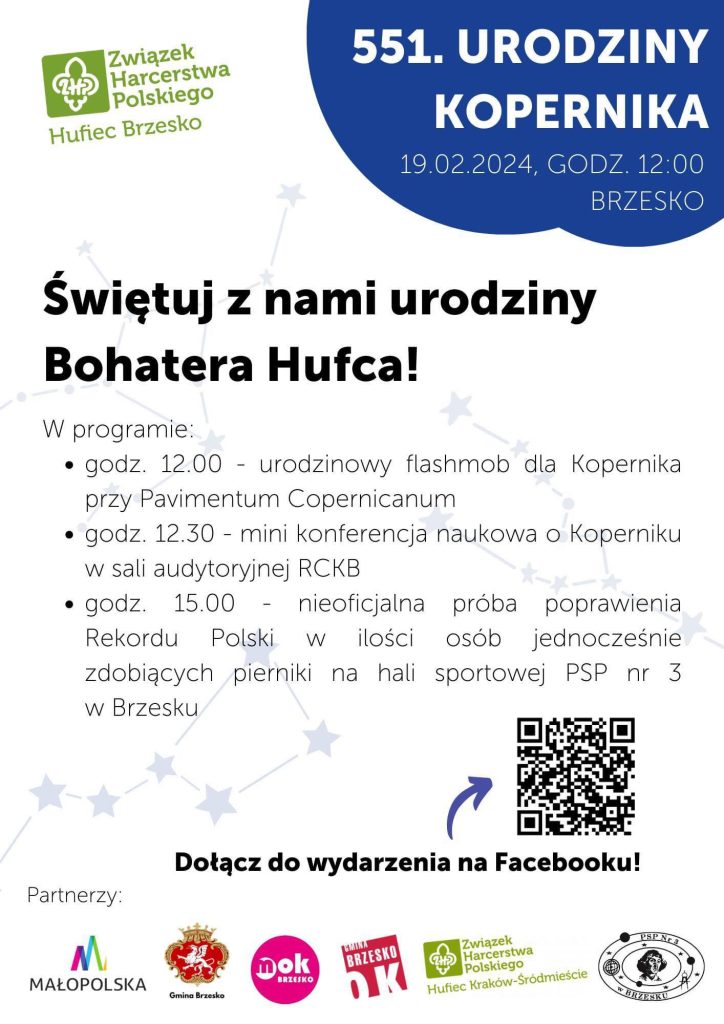 19 lutego 1473 roku w Toruniu urodził się Mikołaj Kopernik – twórca teorii heliocentrycznej i jeden z najważniejszych badaczy w dziejach nauki polskiej i światowej. 19 lutego to dla brzeskich harcerzy okazja do świętowania urodzin patrona Hufca.