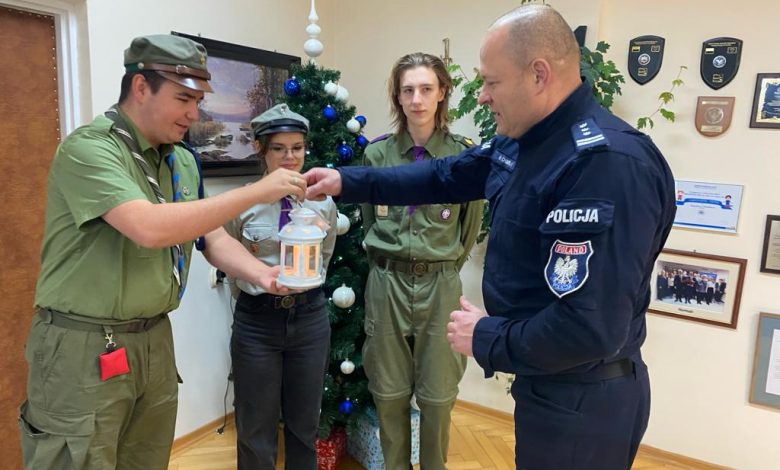 Betlejemskie Światło Pokoju rozświetla już wnętrze brzeskiej jednostki policji. Harcerze Hufca ZHP Brzesko im. Mikołaja Kopernika przekazali ten symbol ciepła, miłości, pokoju i nadziei na ręce Komendanta Powiatowego Policji w Brzesku insp. Bogusława Chmielarza wraz z życzeniami świąteczno-noworocznymi.