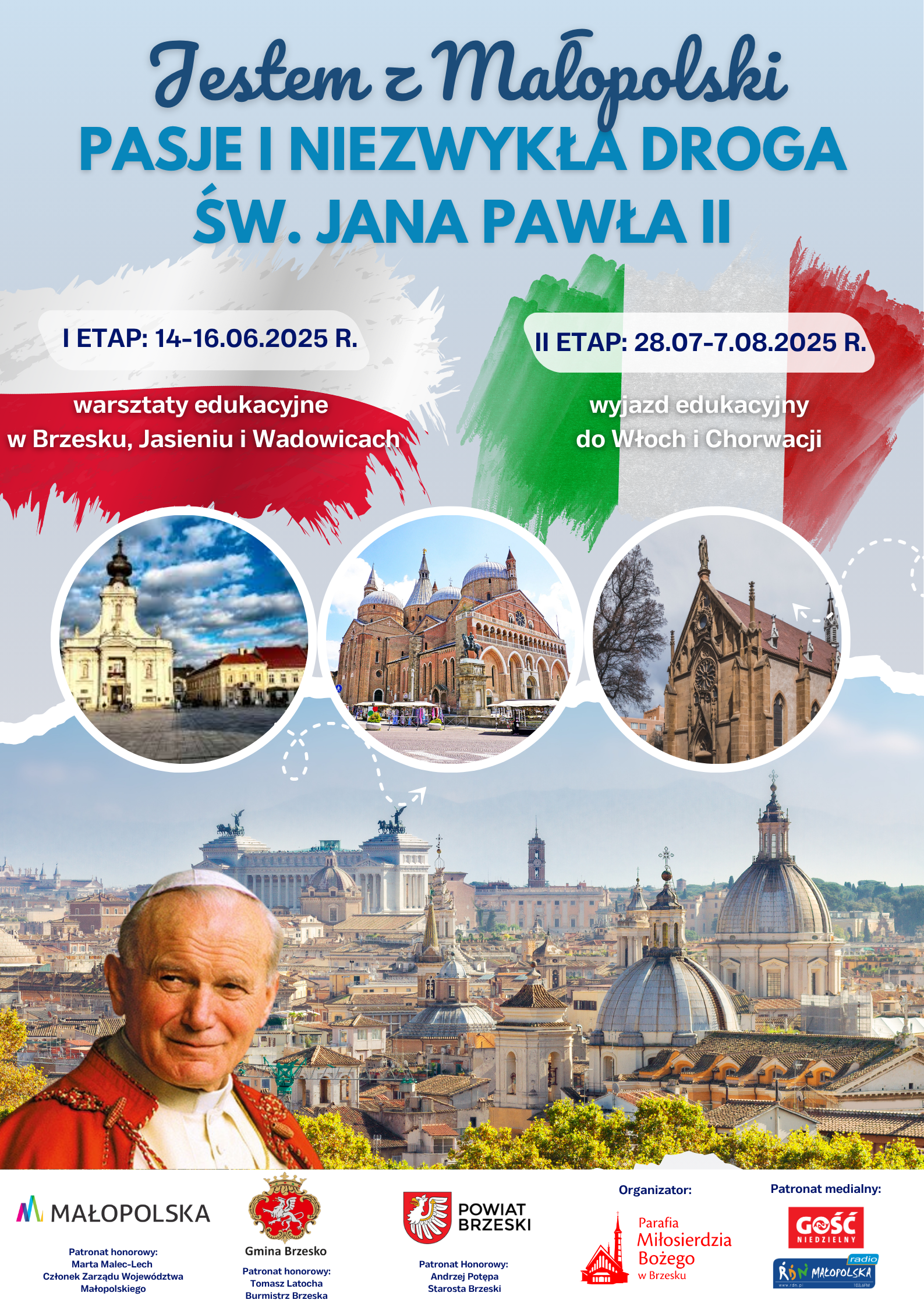 Młodzież z parafii pw. Miłosierdzia Bożego w Brzesku, wspólnie z wychowankami Domów Dziecka w Jasieniu, rozpoczyna realizację wyjątkowego projektu pod nazwą „Jestem z Małopolski – pasje i niezwykła droga św. Jana Pawła”. Celem inicjatywy jest nie tylko integracja młodych ludzi z różnych środowisk, ale także pogłębienie wiedzy o dziedzictwie kulturowym regionu oraz dziedzictwie duchowym i wartościach, które reprezentował św. Jan Paweł II.