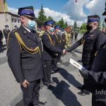 Podczas uroczystości zostały wręczone odznaczenia i awanse na wyższe stopnie służbowe dla najbardziej zasłużonych strażaków.