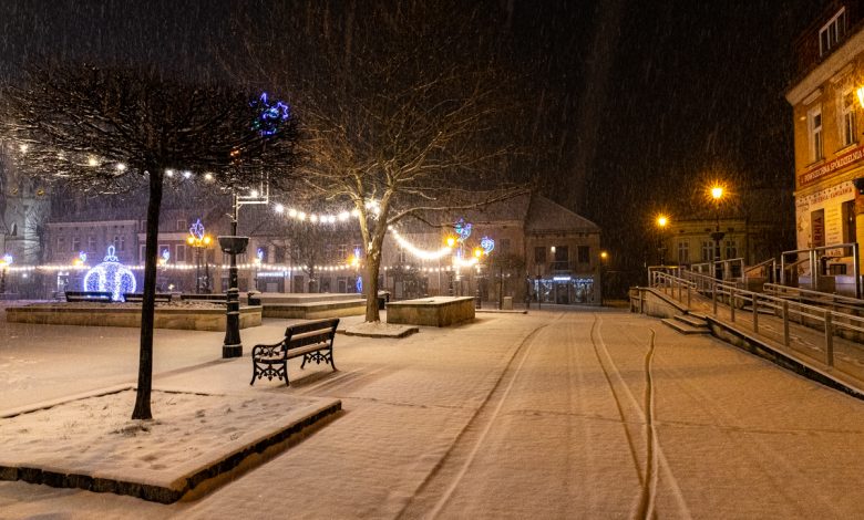 Świeży śnieg dodał uroku ulicom, budynkom i placom, tworząc niemal pocztówkowy krajobraz. Choć warunki na drogach wymagają od kierowców większej ostrożności, zimowa sceneria sprawia, że miasto wygląda wyjątkowo nastrojowo.