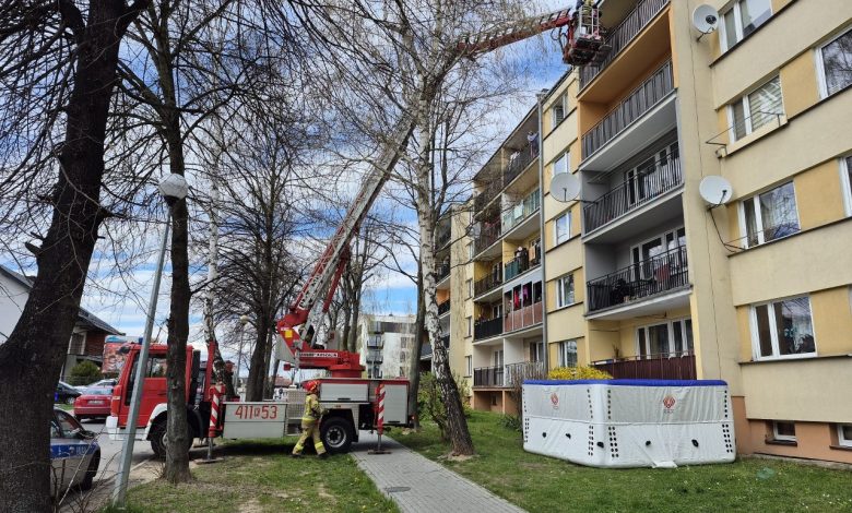 Brzesko. Pożar na 4 piętrze w bloku na osiedlu Partyzantów. Z mieszkania ewakuował się chłopiec w wieku 14 lat / zdjęcia