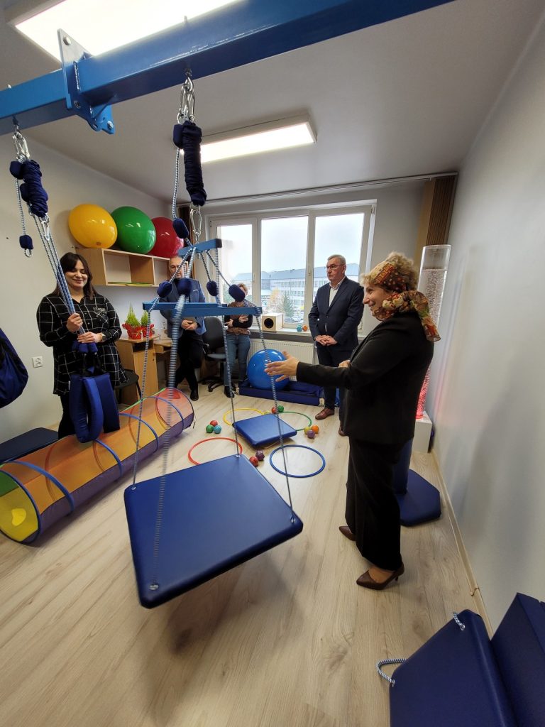 W poniedziałek 27 listopada z udziałem Starosty Brzeskiego Andrzeja Potępy, Dyrektora Wydziału Edukacji Janiny Motak w Poradni Psychologiczno-Pedagogicznej w Brzesku odbyło się oficjalne otwarcie i oddanie do użytku sali do terapii integracji sensorycznej. Dzięki sponsorom: Państwu Angelice i Piotrowi Czyżyckim (CMC Czyżycki), Stowarzyszeniu BE ACTIVE, Zespołowi Szkół Technicznych i Branżowych w Brzesku oraz przychylności władz Powiatu Brzeskiego przygotowano salę do zajęć specjalistycznych. Sponsorzy zakupili atestowany sprzęt terapeutyczny, pomoce i materiały dydaktyczne, aby diagnoza i terapia SI była dostępna również dla naszych podopiecznych.