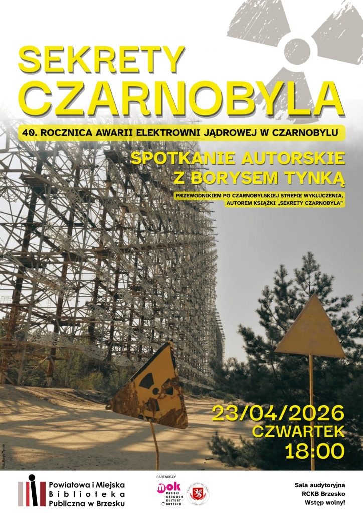 Mija 40 lat od wydarzeń, które na zawsze zmieniły bieg historii. Czy znamy już wszystkie fakty o katastrofie w Czarnobylu? Co kryje dzisiejsza Strefa Wykluczenia? W czwartek 23 kwietnia 2026 r. Biblioteka Brzesko zaprasza na wyjątkowe spotkanie autorskie z Borysem Tynką – autorem książki „Sekrety Czarnobyla” i jedynym Polakiem, który ukończył specjalistyczny kurs dla przewodników po czarnobylskiej strefie.