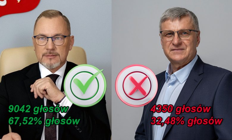 Jego kontrkandydat Janusz Filip otrzymał 4 350 głosów co dało poparcie na poziomie 32,48%.
