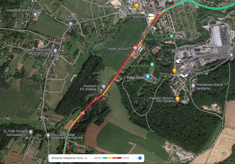 Mapa natężenia ruchu – 14 grudnia 2023 r. godz. 20.40