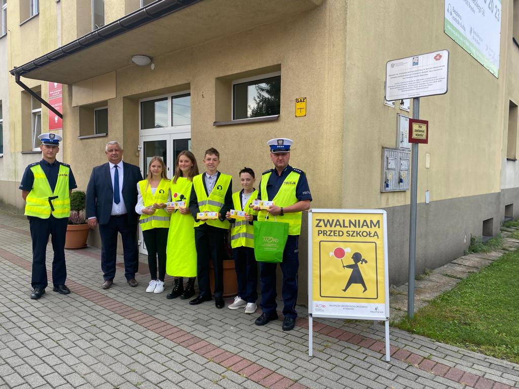 Brzesko. Zwalniam przed szkołą – policjanci dbają o bezpieczeństwo dzieci i młodzieży