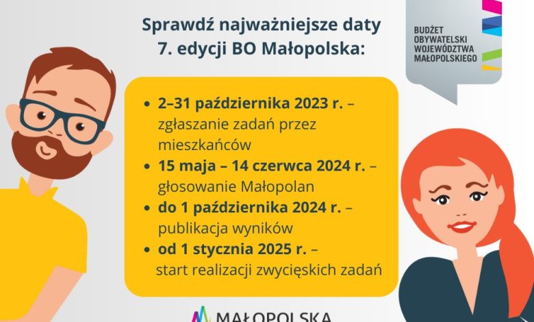 Najważniejsze daty 7. edycji Budżetu Obywatelskiego Województwa Małopolskiego: