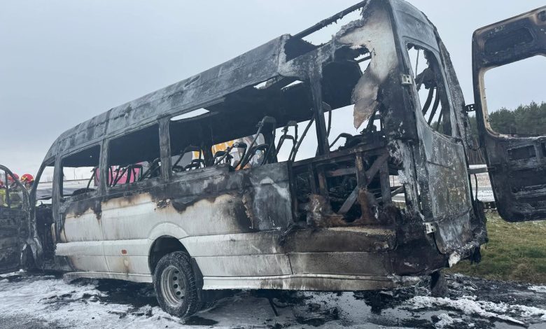 Zarzewie ognia miało miejsce w komorze silnika i bardzo szybko zaczęło się rozprzestrzeniać na cały pojazd. Kierowca zdążył zatrzymać busa przy prawej krawędzi jezdni, a osoby podróżujące nim zdołały opuścić wnętrze bez żadnych obrażeń. Niestety kierowca nie był w stanie ugasić pożaru w efekcie czego, spłonął on doszczętnie.