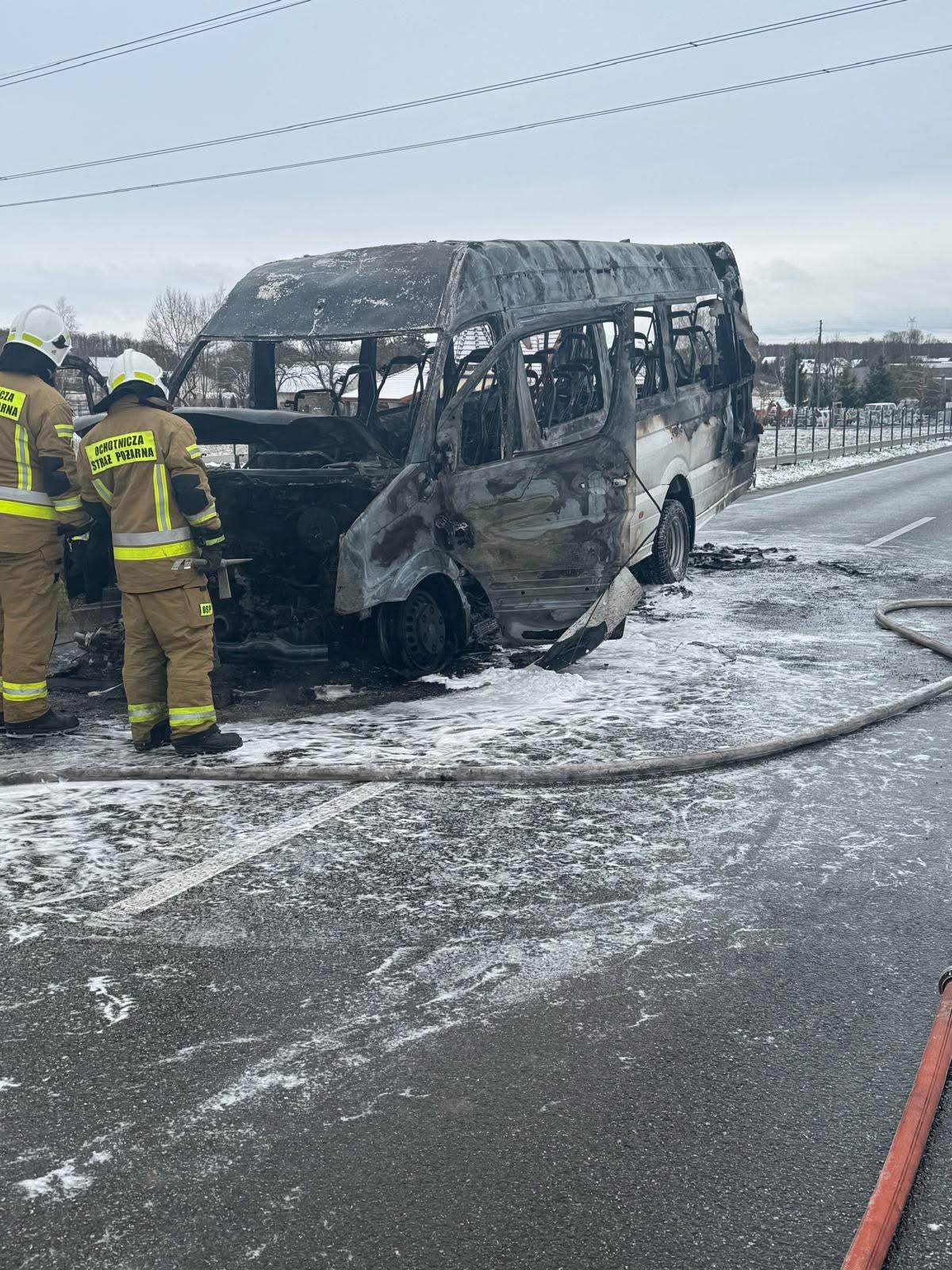Bus doszczętnie spłonął. Nikt z podróżujących nie ucierpiał / zdjęcia