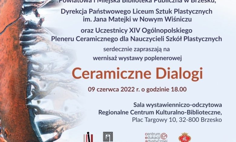 Wernisażem otwarta zostanie wystawa poplenerowa „Ceramiczne Dialogi” prezentująca ceramikę powstałą podczas XIV Ogólnopolskiego Pleneru Ceramicznego dla Nauczycieli Szkół Plastycznych w Nowym Wiśniczu.