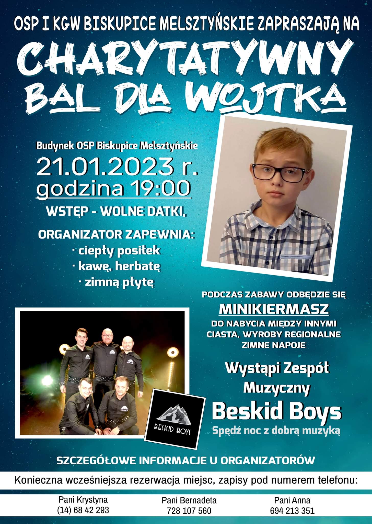 W sobotę 21 stycznia 2023 r. w remizie OSP Biskupice Melsztyńskie odbędzie się charytatywny bal dla Wojtusia Kiełbasy. Koło Gospodyń Wiejskich oraz tamtejsza jednostka OSP przygotowali imprezę, z której dochód zostanie przeznaczony na leczenie chłopca. Gwiazdą wieczoru będzie zespół Beskid Boys.