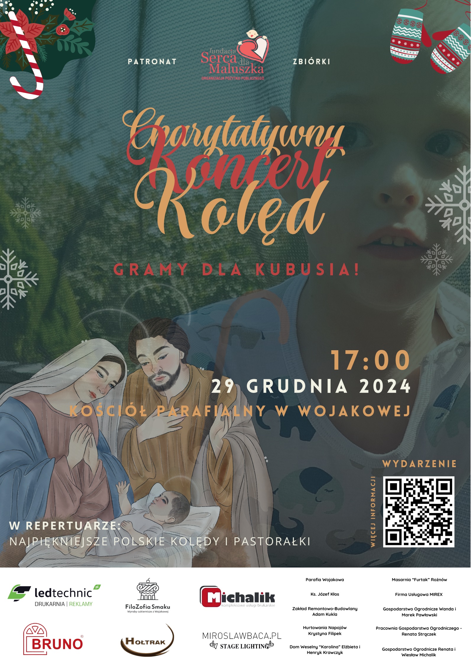 W niedzielę 29 grudnia 2024 roku w kościele parafialnym w Wojakowej po mszy wieczornej (około godz. 17:00) odbędzie się charytatywny koncert kolęd „Gramy dla Kubusia”.