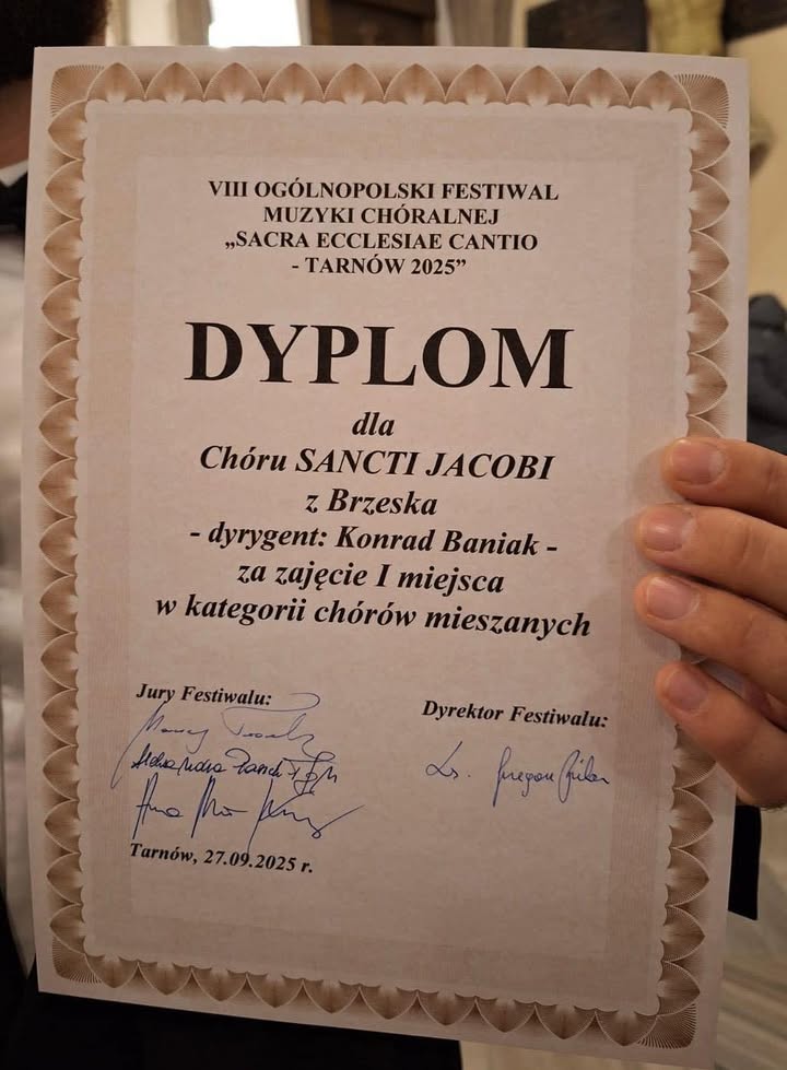 Chór Sancti Jacobi z Brzeska triumfuje na Ogólnopolskim Festiwalu Chórów w Tarnowie