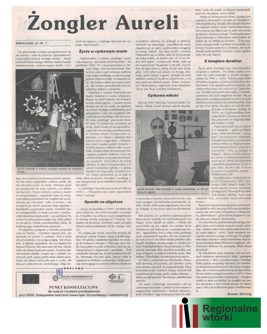Skórnóg R., Żongler Aureli, „Temi”, 2006, nr 12, s. 1, 10.
