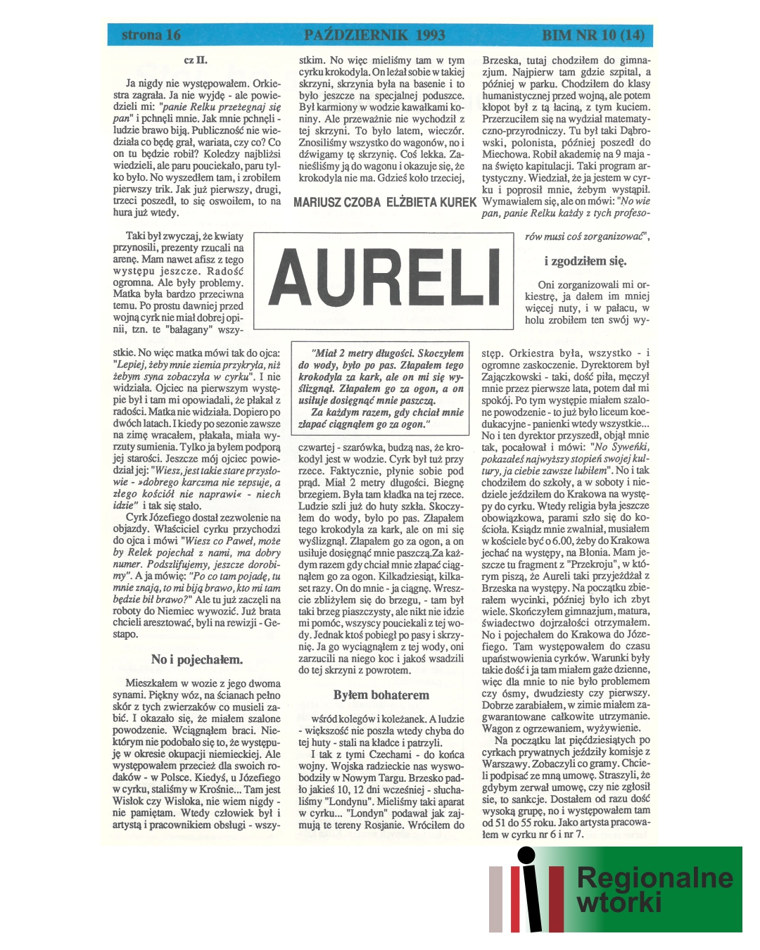 Czoba M., Kurek E., Aureli, „BIM”, 1993, nr 9, s. 16.