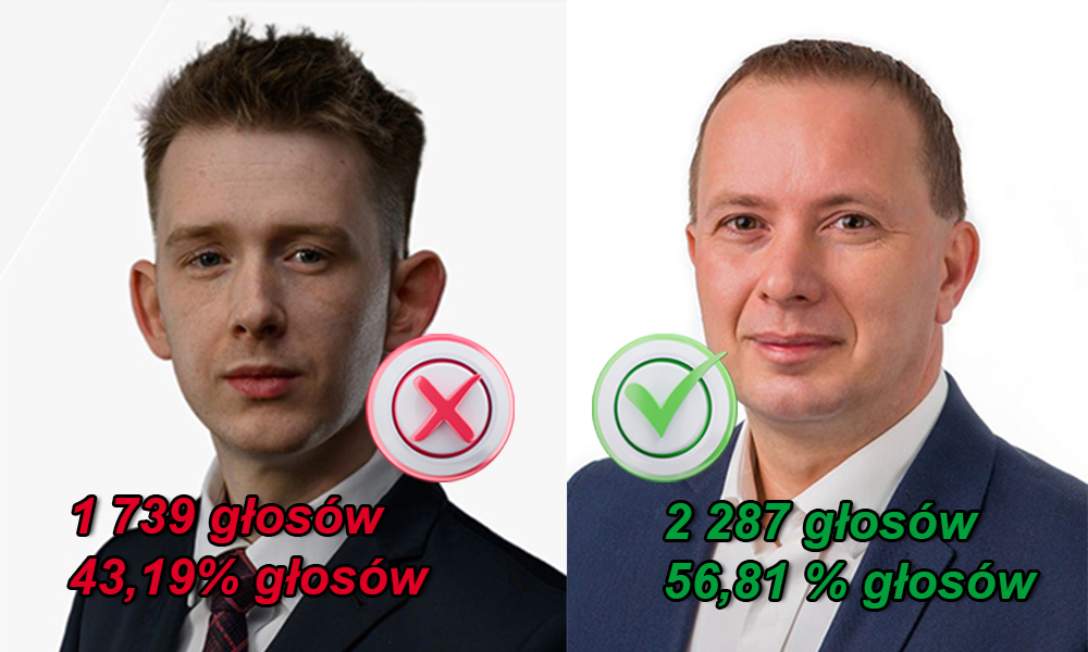 Krzysztof Szot uzyskał 2287 głosów (56,81%), natomiast Jakub Kowalczyk otrzymał 1739 głosów (43,19%).